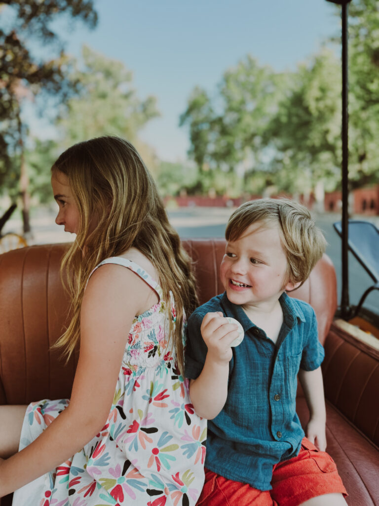 Have you seen that funny trend on social media of people galloping while someone takes their photo? Honestly it is super cute and works wonders. On our trip to Italy, I had my kids hold hand and gallop towards the camera and the photos are magical. Don’t be afraid to tell your kids to move around. Is your child wearing a dress that was made for twirling? Go for it. Need to lighten the mood? Start blowing some raspberries and capture their giggles. Photos don’t need to be staged and forced.