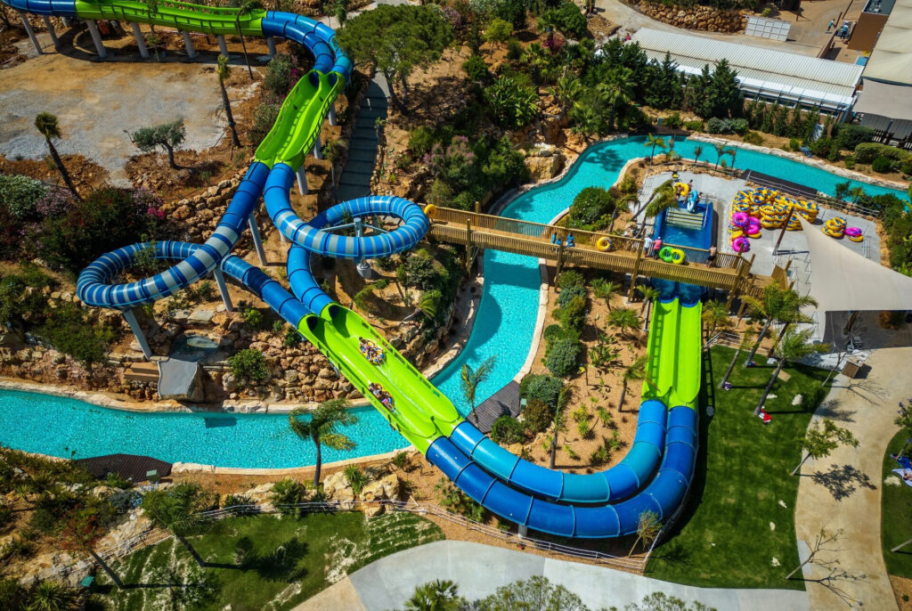 Slide & Splash in Lagoa is the most centrally located option for families staying in the central Algarve. It’s a classic water park with slides, a lazy river, and wave pools — well-suited for kids of varying ages. The lazy river is particularly good for younger children who want to feel part of the action without anything too intense.