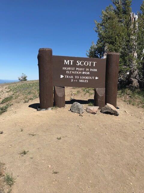 - Trailhead: Mount Scott parking area, East Rim Drive