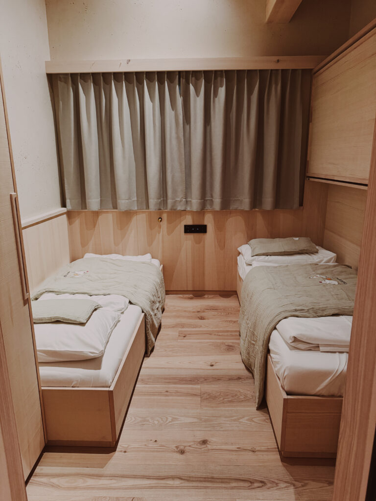 One of Moar Gut’s standout features is that every family suite includes a separate kid zone — not just an extra bed. The children’s rooms vary by suite type but often feature: