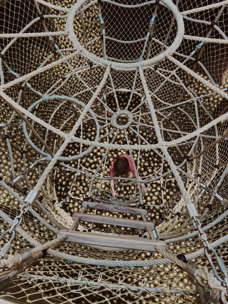 I’ll give you the full run down on the kids club below but wanted to mention that even if you don’t utilize the kid’s club, you are free to utilize the parent-plus kinderhof space. This includes a one story slide into a golden ball pit, climbing net, track with scooters, and so many more thoughtful toys. This space is designed for parents to accompany their children and is separated from the childcare center for safety.