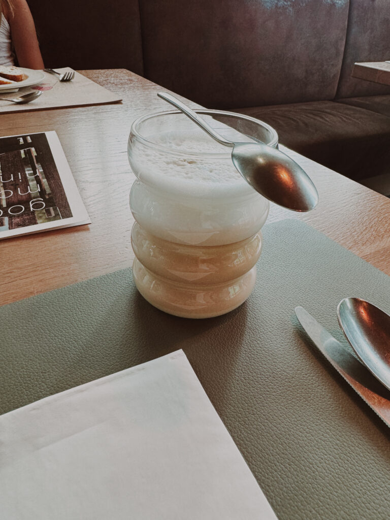 I loved sipping cappuccino while watching the cows graze outside the window — a quintessential Austrian morning moment.