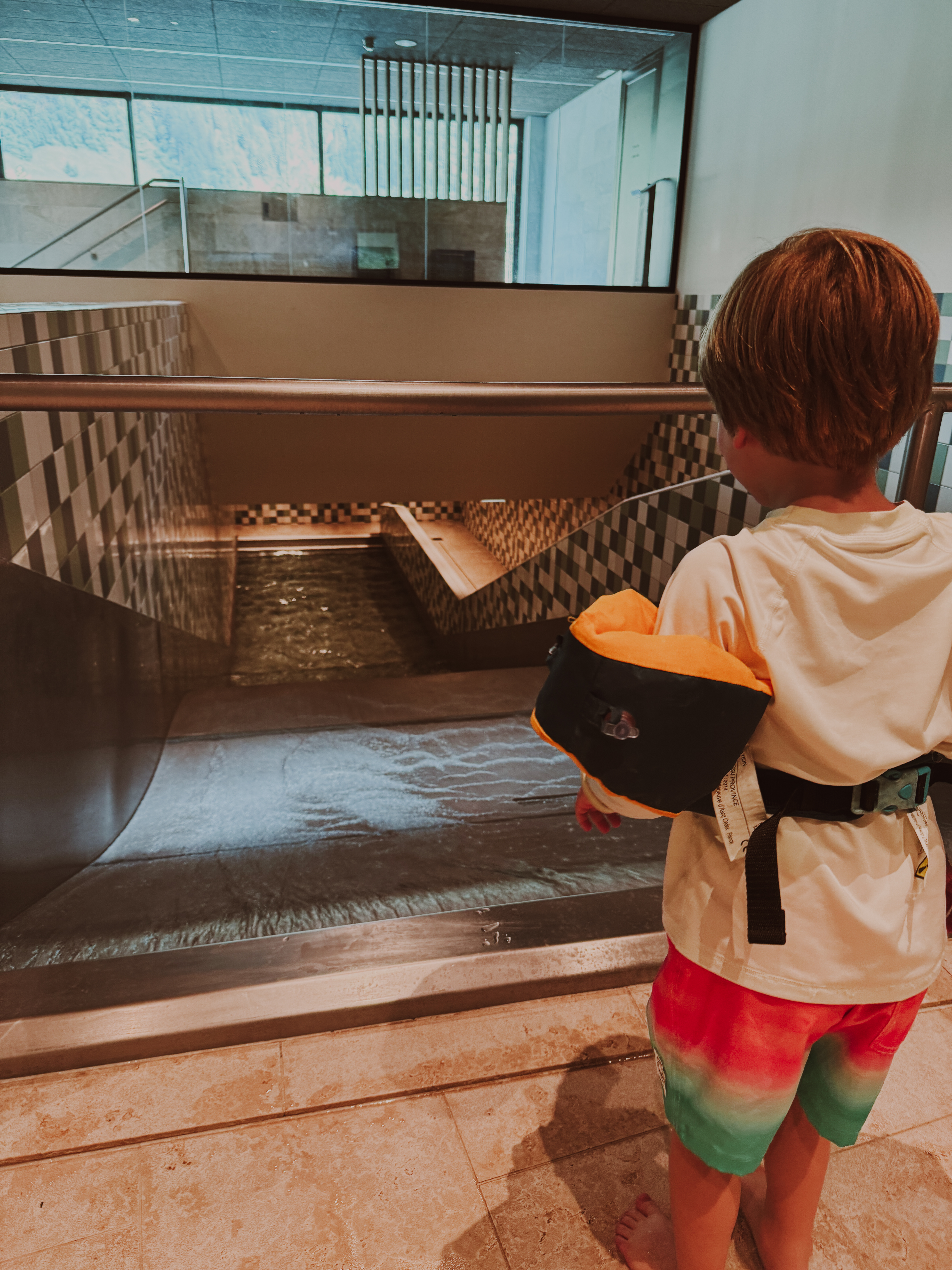 - Indoor Water Slide is a one story slide that can easily accommodate 2-4 sliders and the perfect amount of speed to entertain bigger kids without terrifying toddlers. The water also happened to be the warmest making it my absolute favorite!