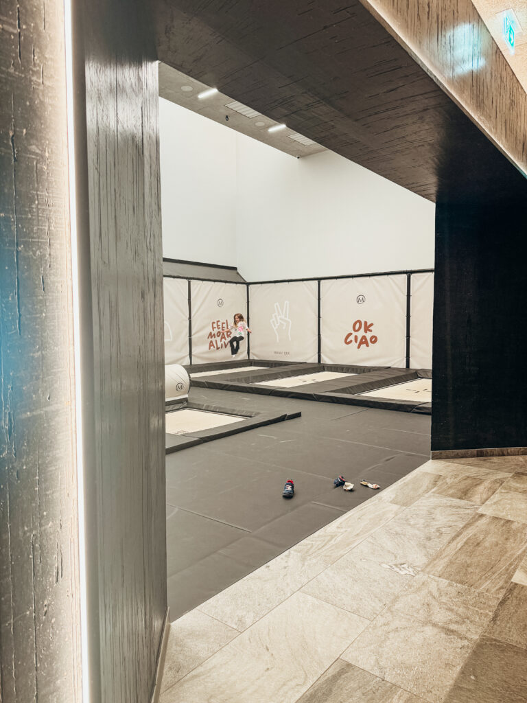 When the weather turns, the fun continues indoors. There are two arcade spaces offering interactive games, table tennis, and board games. And a massive indoor trampoline park where kids can bounce and navigate obstacle courses until they are ready for bed!